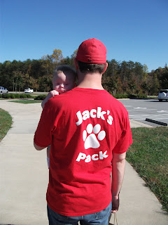 Today we celebrated our friends' little girl Ella's first birthday at a wonderful party (way to go, Laine ... awesome time!). It was a day full of friends, fun and laughter. A friend of ours who we haven't seen much of since Jack's birth came up to Robert, Jack, and I and asked us if he could talk to us for a minute. We said sure, of course, and he went on to tell us about how when he first heard about Jack's birth and diagnosis, he called upon an old friend of his who had four boys, two typical children, one with Down Syndrome and one with Autism. He called upon this friend to ask him advice in terms of what to say or do for us because of Jack's diagnosis. His friend told him that out of all four of his children, if he had to choose only one to have he would choose his son with Down Syndrome. I thought this was an amazing thing to say, and I of course started tearing up upon hearing this. Our friend quickly said, "I'm sorry, I didn't mean to make you sad." I quickly corrected him, explaining that I was not tearful because I was sad, but that I understood what his friend meant when he said this about his special son and about how happy I was to finally and truly be "there."